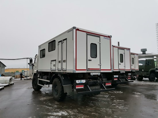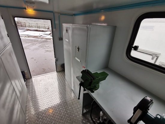 Новая модель автомастерской в комплектации для предприятий газовой службы. Шасси КАМАЗ по требованию Заказчика может быть заменено на МАЗ (Евро 5). Базовое шасси КАМАЗ-43502-000-3036-D5. Наружные размеры кузова (ДхШхВ), мм: 4700*2480*2010. Кузов изготавливается по бескаркасной технологии из сэндвич-панелей. Шины односкатные, рисунок протектора повышенной проходимости. Кабина малая, трехместная, оборудованная световым и звуковым (зуммером) сигналами, информирующими водителя о незакрытых дверях в кузове. Утеплитель панелей кузова - экструдированный пенополистирол – современный утеплитель, применяемый в фургоностроении, является долговечным материалом (срок службы может доходить до 60 лет), не подвержен гниению и не создает условий для образования плесени, устойчив к действию воды, не теряет своих свойств при воздействии слабых растворов кислот, щелочей и солей Сэндвич-панели соответствуют нормам по пожарной безопасности в соответствии с ГОСТ 30879-2003, действующим в Республике Беларусь. Жесткость кузова. Плита пола устанавливается на надрамник (основание), представляющий собой две продольные металлические балки, опирающиеся на лонжероны шасси. Между балками проложены усиливающие пол поперечины. Стены и Пол фургона усилены внутренними ребрами жесткости из полос фанеры, поставленных «на ребро» с шагом 600 мм. В каждой панели наличие связанной рамки, выполненной из стальной профильной трубы, образующейся, при соединении панелей, в кузов при помощи сварки Дополнительное оборудование: