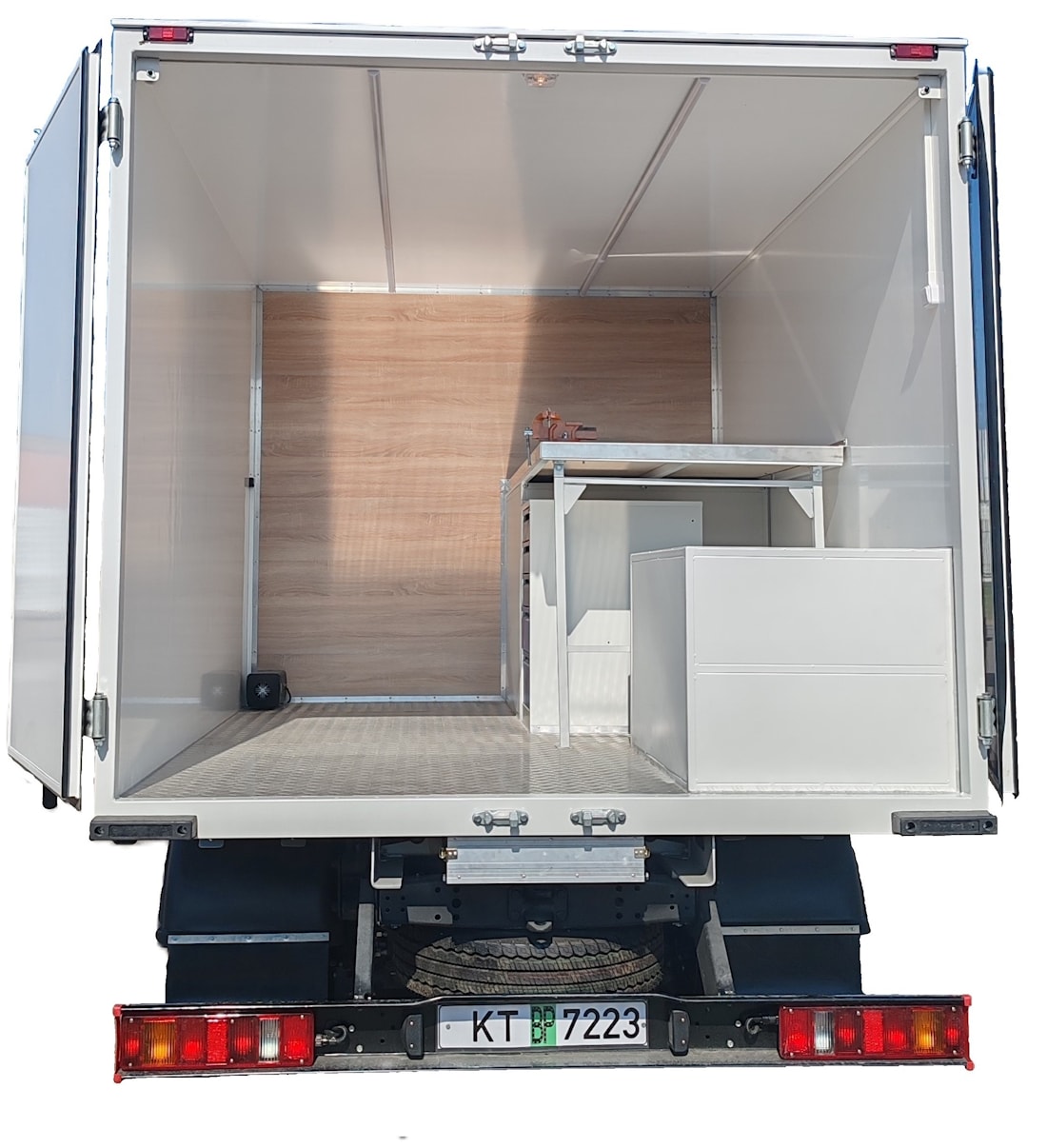 • В кузове, по правой стороне предусмотрен верстак с тисками;