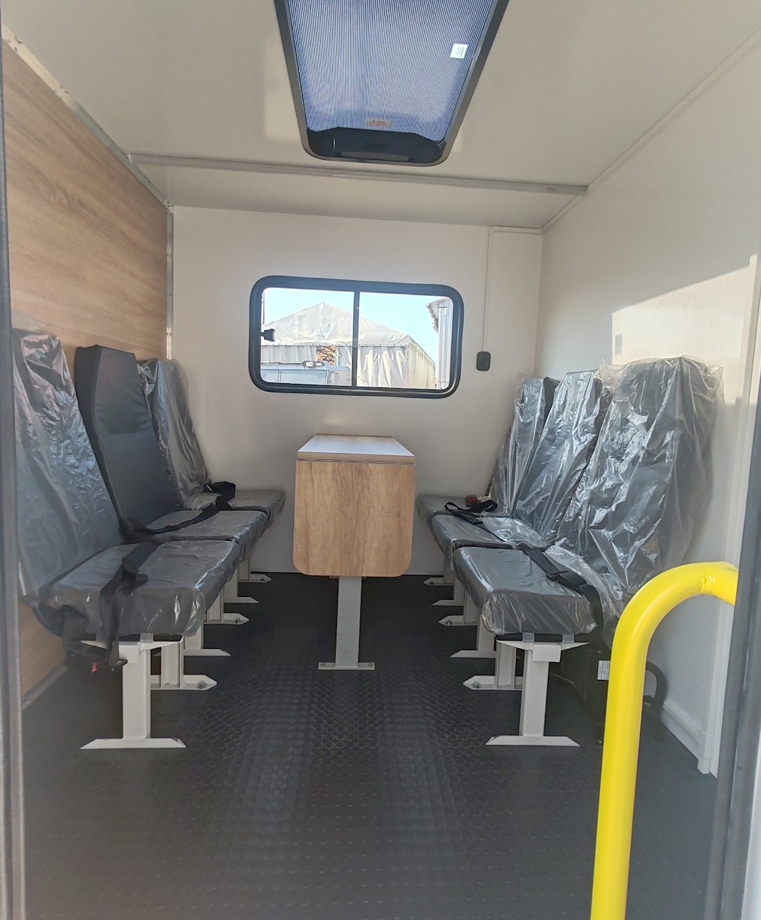 Вход осуществляется через боковую правую одностворчатую дверь по встроенным в конструкцию кузова ступеням